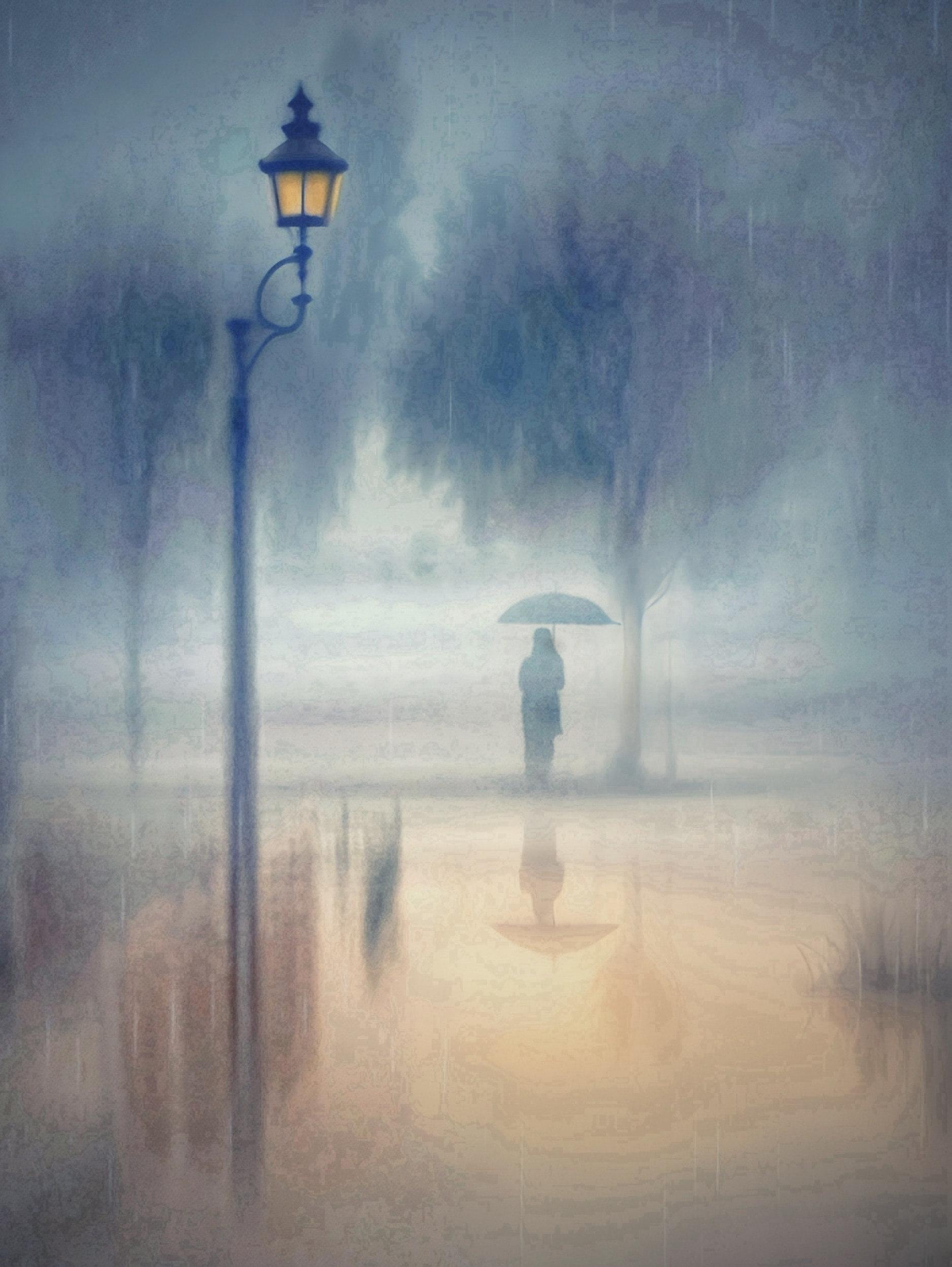 It was a typical autumn evening in 2024. A gentle drizzle fell as I walked along the path, until I saw a dim streetlight at a junction and a woman standing under a tree with an umbrella. Her silhouette was outlined in the light, raindrops sparkled on the umbrella and reflections swayed softly on the ground. In that moment, my mind was filled with scenes from a film.